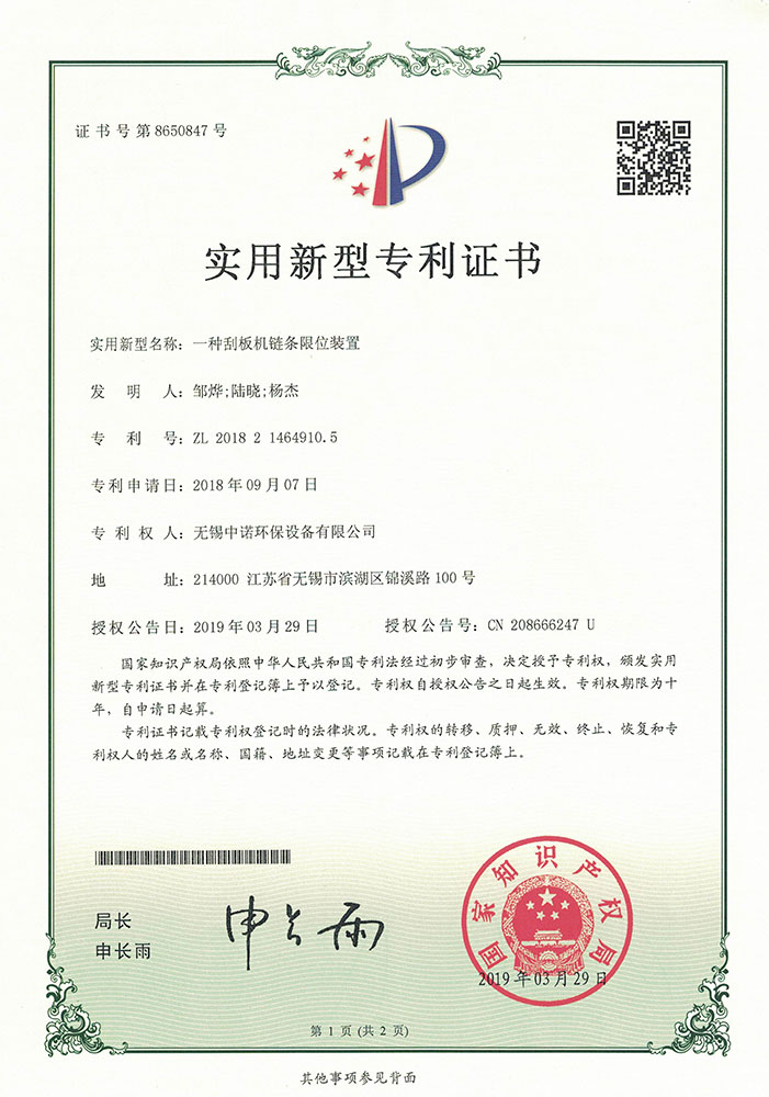 一種刮板機(jī)鏈條限位裝置實(shí)用新型專利證書