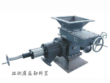 該設(shè)備用于粉料貯倉底部或側(cè)面卸料用,設(shè)備帶有流化裝置,卸料時能使物料流態(tài)化排出,通過輸送管道或斜槽,配合散裝機(jī)直接裝料,該系統(tǒng)有氣動和手動兩種控制方式,氣動用電磁閥控制氣缸伸縮運(yùn)動,實(shí)現(xiàn)卸料閥門的啟閉;手動為轉(zhuǎn)動手輪啟閉閥門。